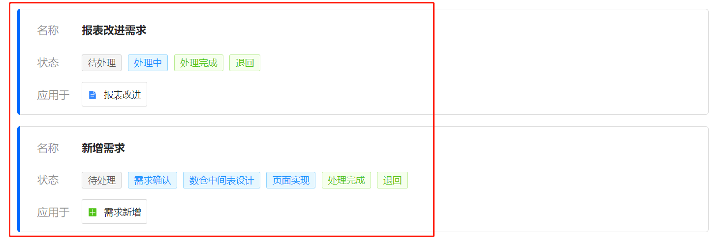 例如:需求在“处理完成”状态,可以改为“处理中”状态;需求在“退回”状态,可以改为“未处理”状态。
