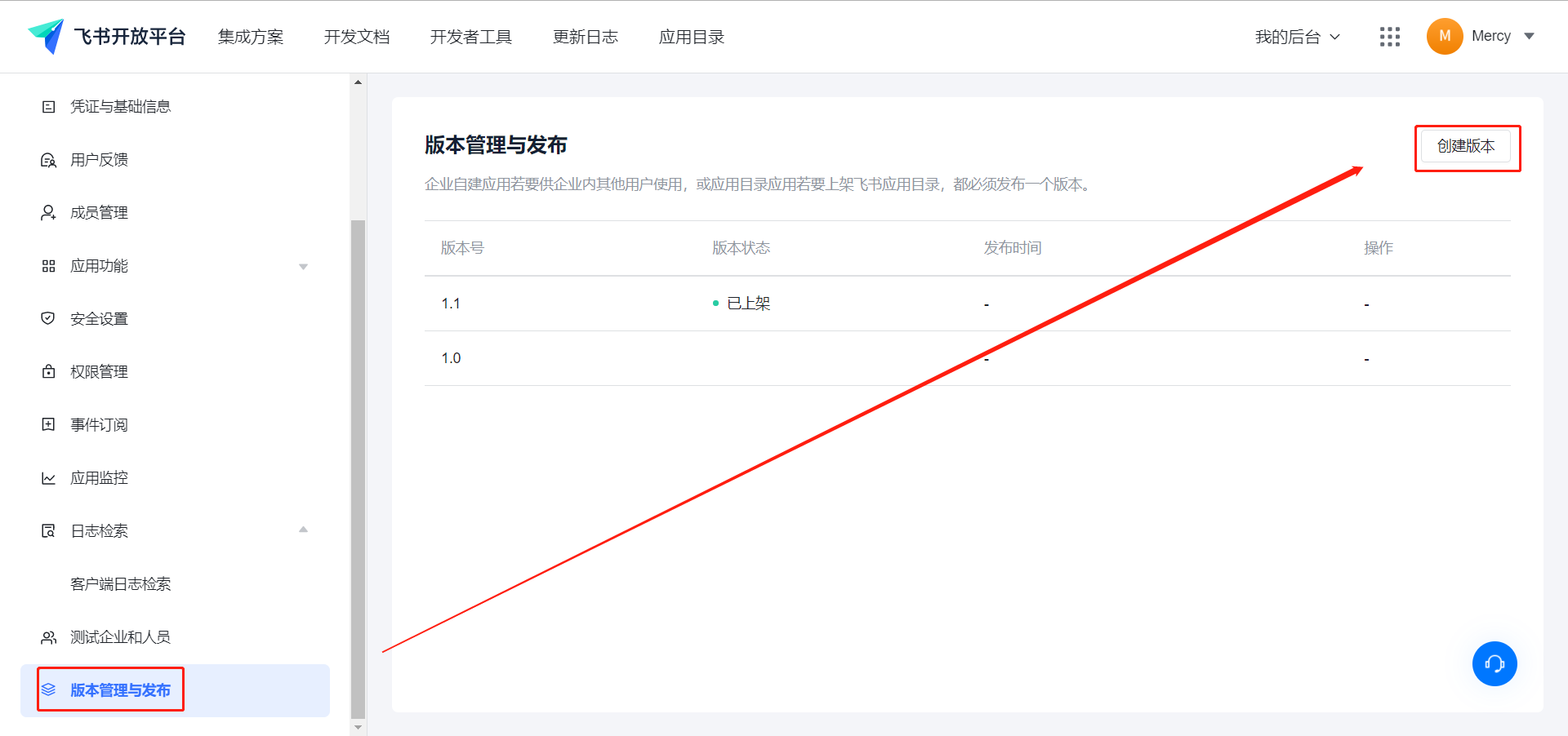1、在【版本管理与发布】界面中,点击【创建版本】