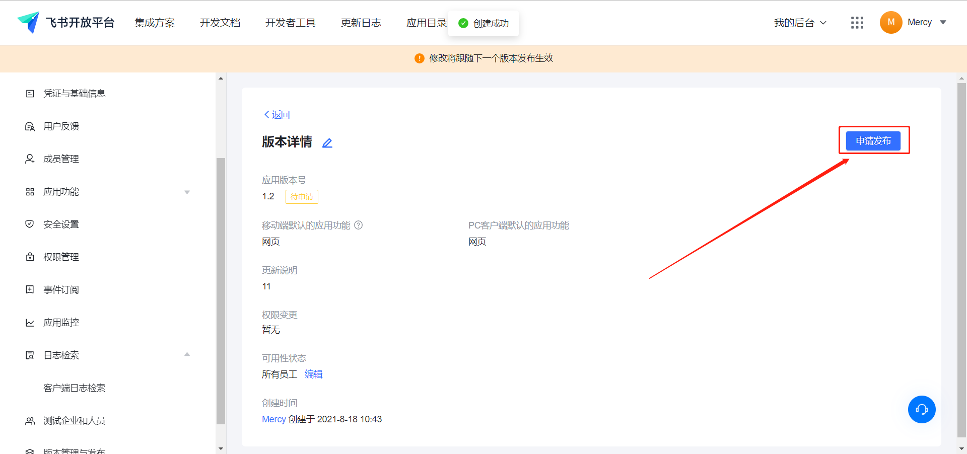 2.3在飞书开放平台配置应用