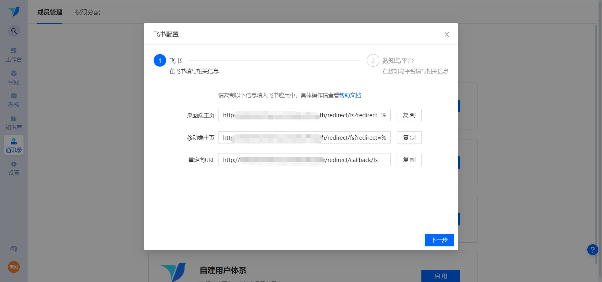 2.1在数知鸟平台启用飞书体系