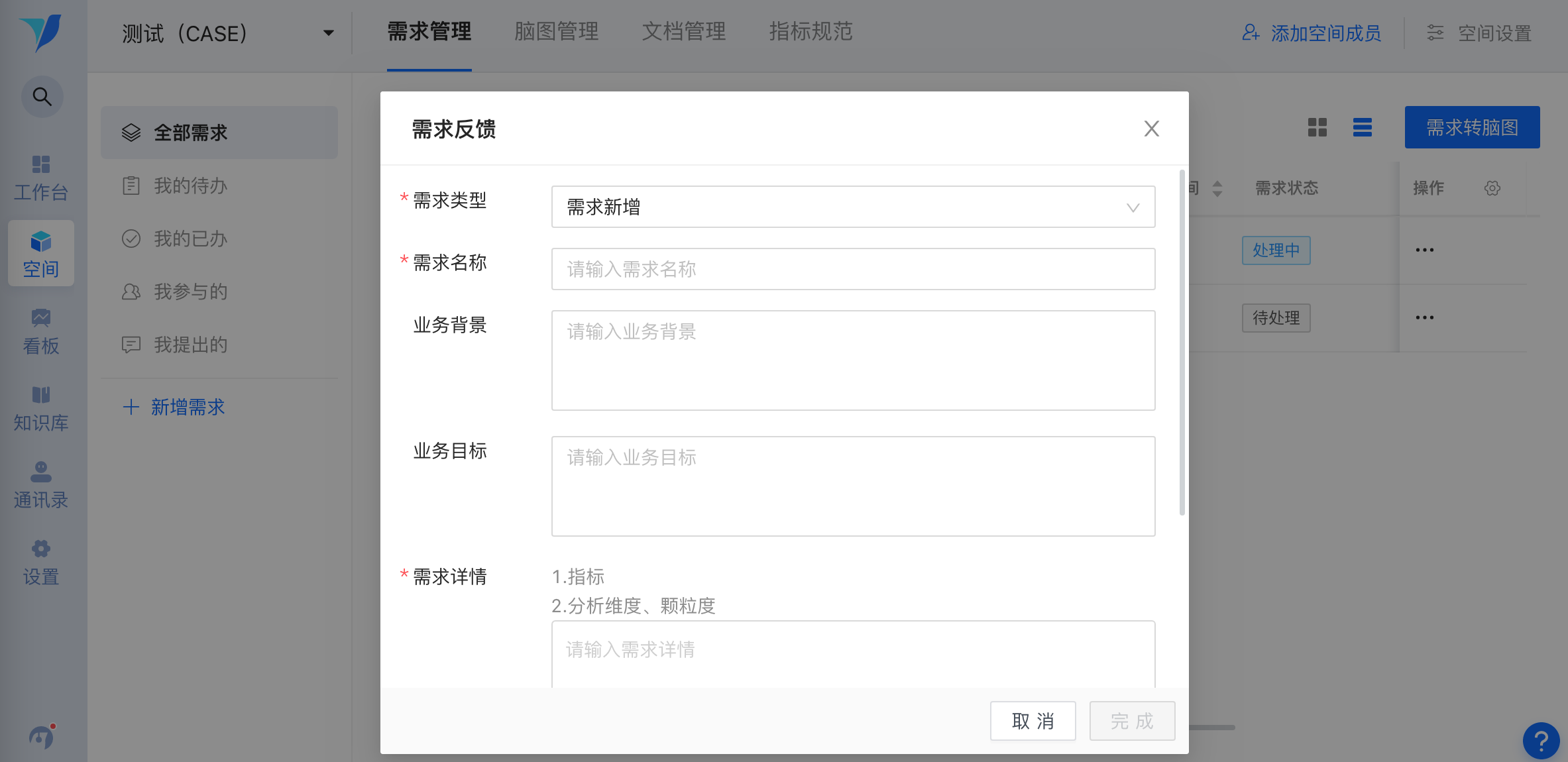 需求管理页: